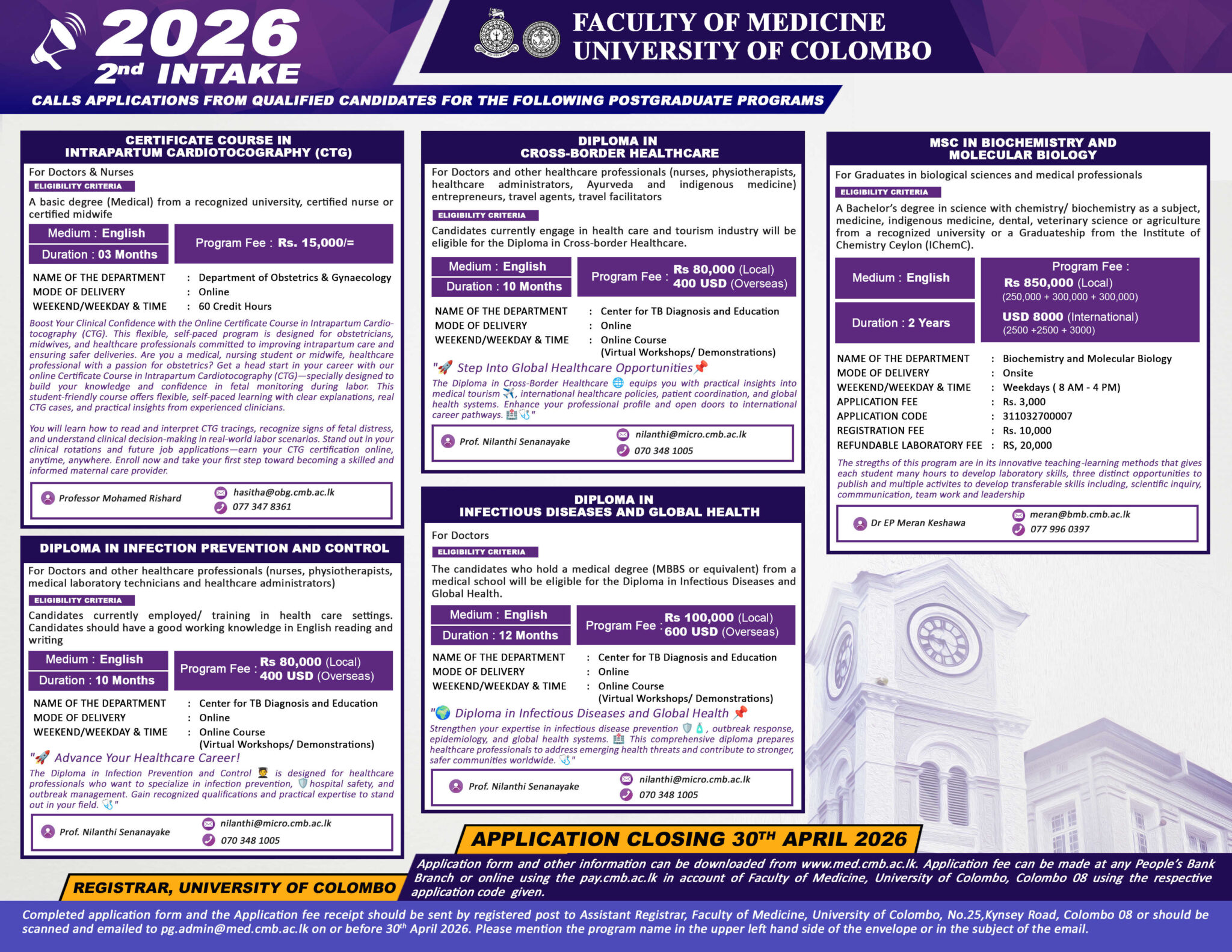 Address Faculty of Medicine, University of Colombo View map Categories Courses , Medicine , Postgraduate Diploma Read More Related Course Advance Certificate course in Ayurveda Caregiving Application Calling for Counselling & Psychology Course Programs – IHRA