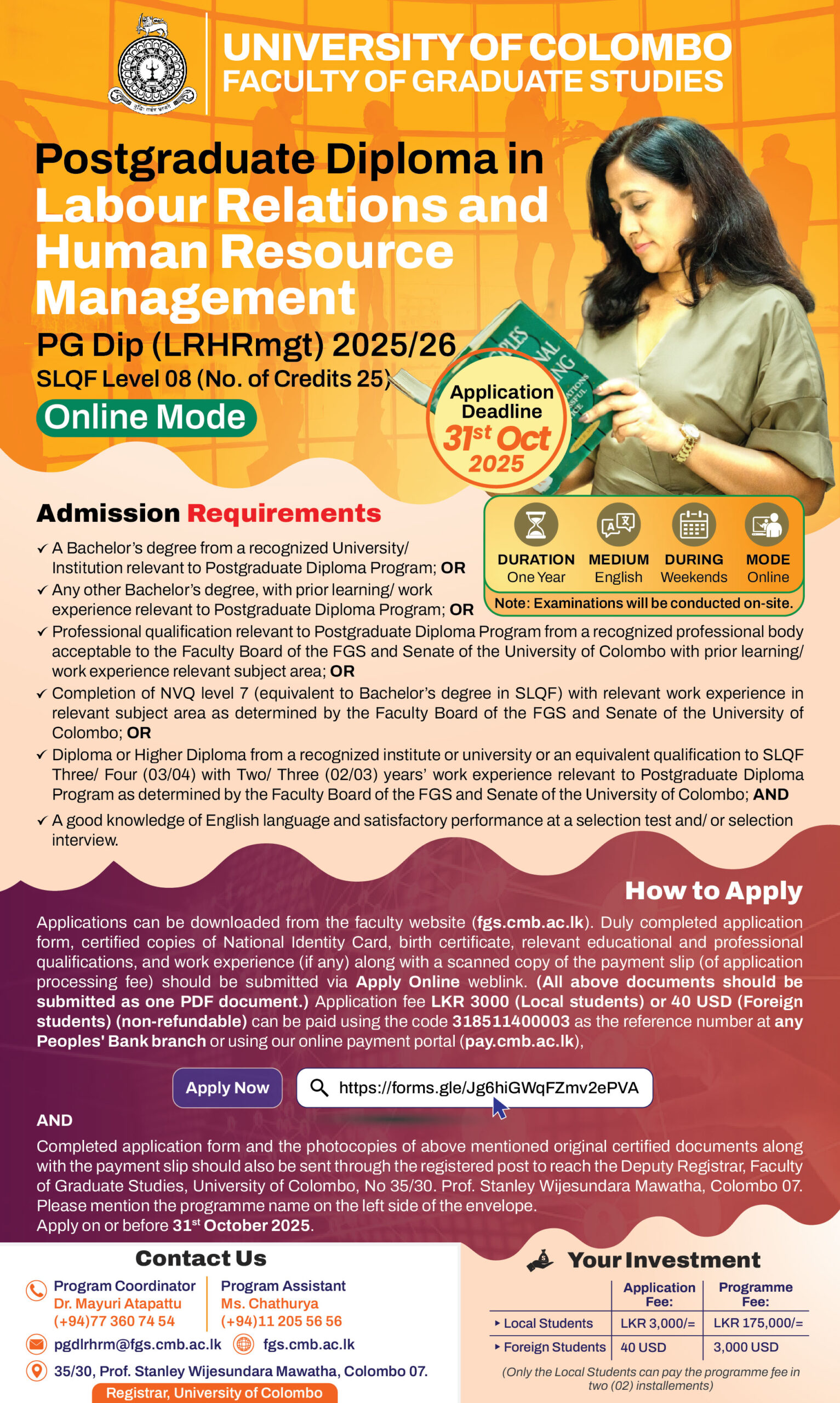 DURATION: 1 Year Address Faculty of Graduate Studies, 35/30, Prof. Stanley Wijesundara Mawatha, Colombo 07, Sri Lanka View map Categories Courses , Postgraduate Diploma More Details Related Course Advance Certificate course in Ayurveda Caregiving Application Calling for Counselling & Psychology Course Programs – IHRA