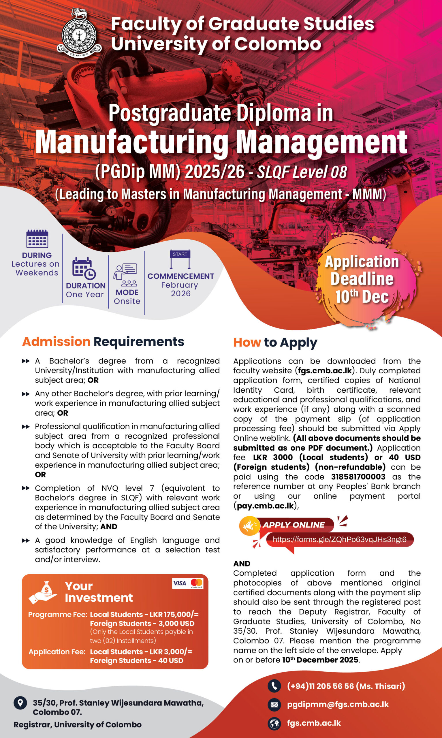 DURATION: 1 Year Address Faculty of Graduate Studies, 35/30, Prof. Stanley Wijesundara Mawatha, Colombo 07, Sri Lanka View map Categories Courses , FGS , Postgraduate Diploma Read More Related Course Advance Certificate course in Ayurveda Caregiving Application Calling for Counselling & Psychology Course Programs – IHRA