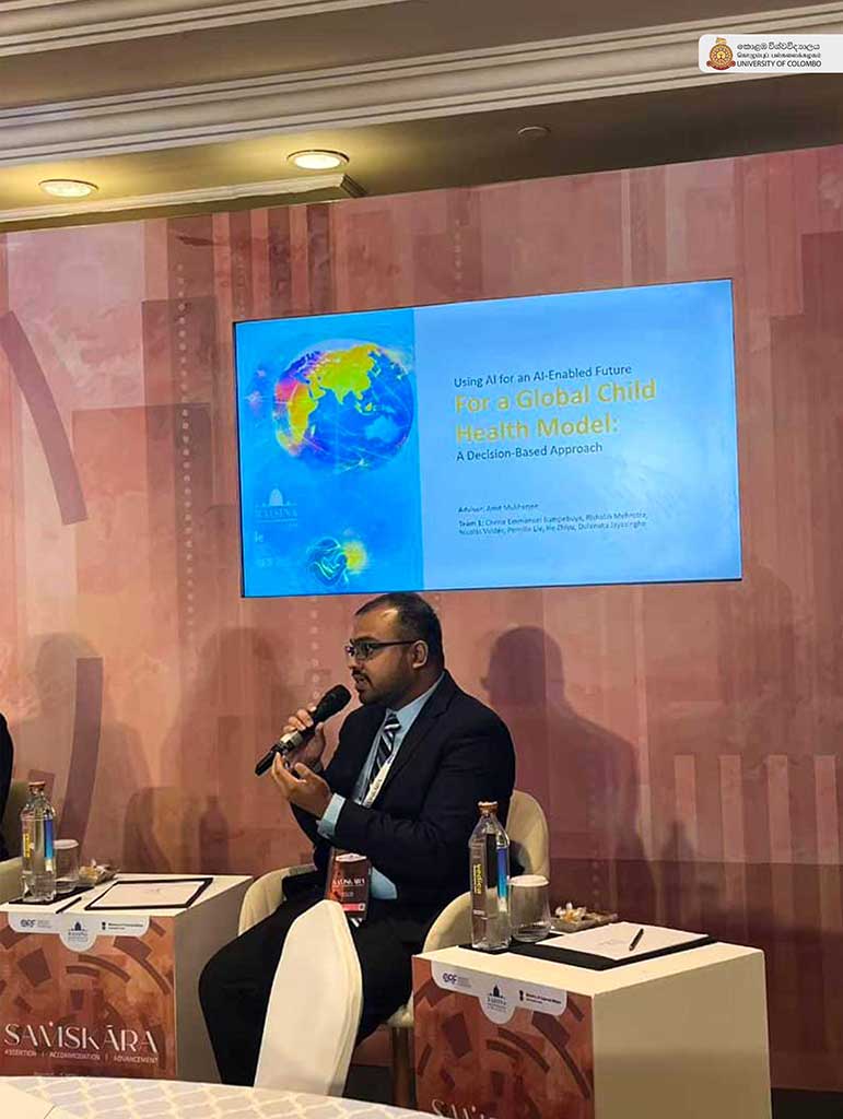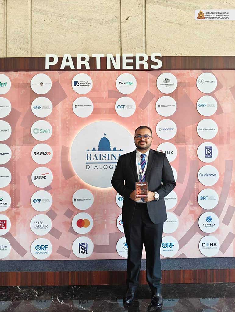The University of Colombo congratulates Mr Dulanaka Jayasinghe, a Master of Arts student in International Relations, Faculty of Arts, who won the runner-up position together with his team at the Raisina-IE Global Student Challenge 2026 held on March 5–6, 2026. This competition, organised by the IE School of Politics, Economics & Global Affairs and the Observer Research Foundation (ORF), brings together students from 84 universities worldwide to address urgent international challenges.