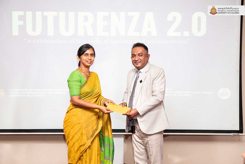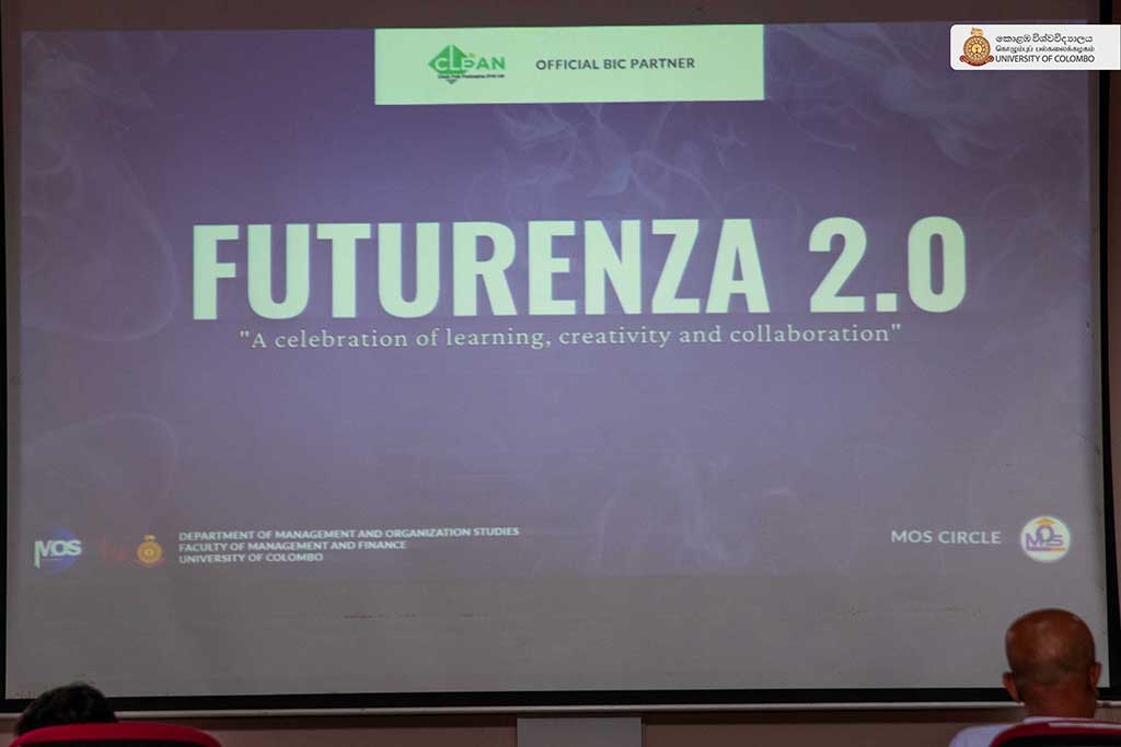 The Department of Management and Organisation Studies (MOS) at the Faculty of Management and Finance concluded its annual departmental event, FUTURENZA 2.0, held on 29th October 2025 under the inspiring theme of “A celebration of learning, creativity and collaboration.” The event was a testament to the Department’s commitment to fostering both academic excellence and practical, entrepreneurial skills among its undergraduates. The esteemed event was graced by the Chief Guest, Professor Indika Mahesh Karunathilake, Vice Chancellor of the University, alongside Professor H M Nihal Hennayake, Dean of the Faculty, and many esteemed faculty members.