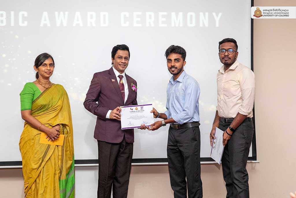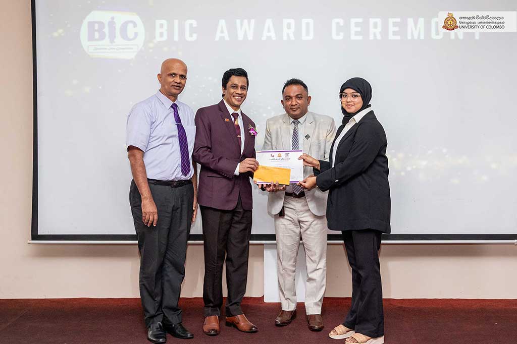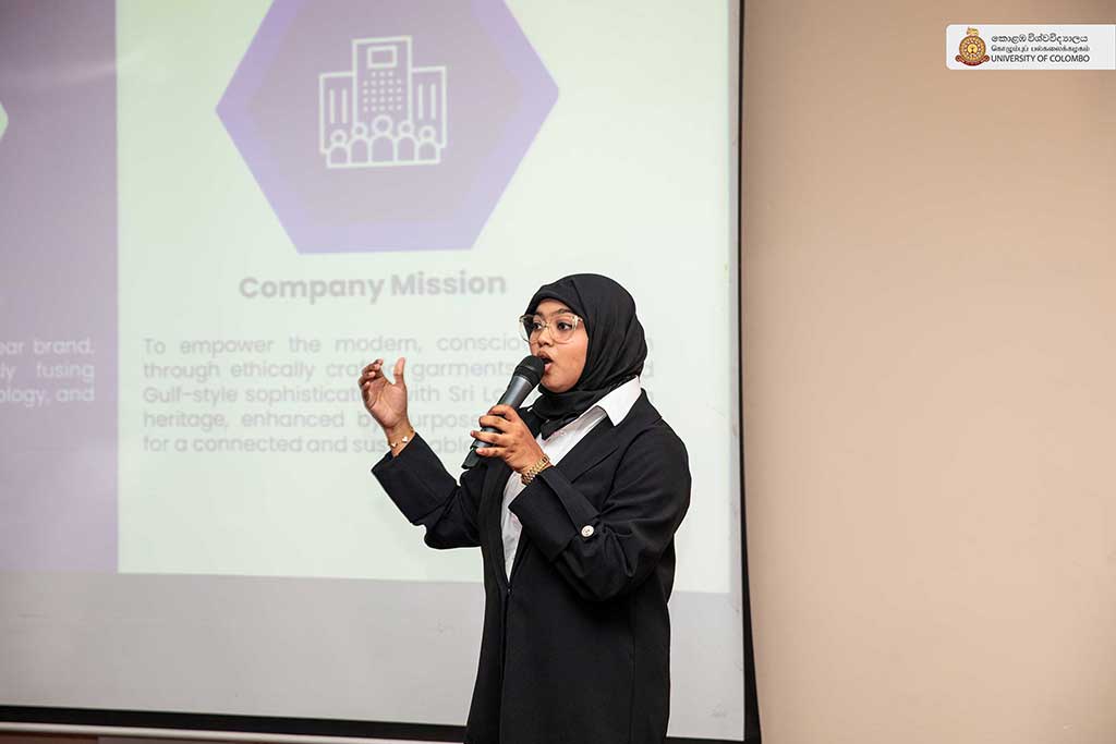 The grand finale of the much-anticipated Business Idea Competition (BIC) 2025 also took centre stage. This flagship event encourages undergraduates across the Faculty of Management and Finance to develop and present innovative business proposals. After a competitive final round, the first prize was awarded to “Modesta Lanka – Gulf style modesty with Sri Lankan heritage textiles”, followed by “Casia special – Premium distilled white arrack” and “Gift Travel – Customizable travel packages presented as unique gifts”, securing the second and third places respectively.