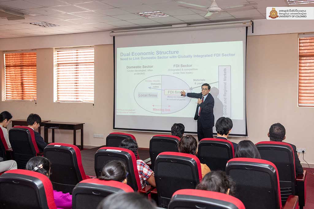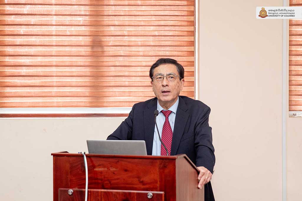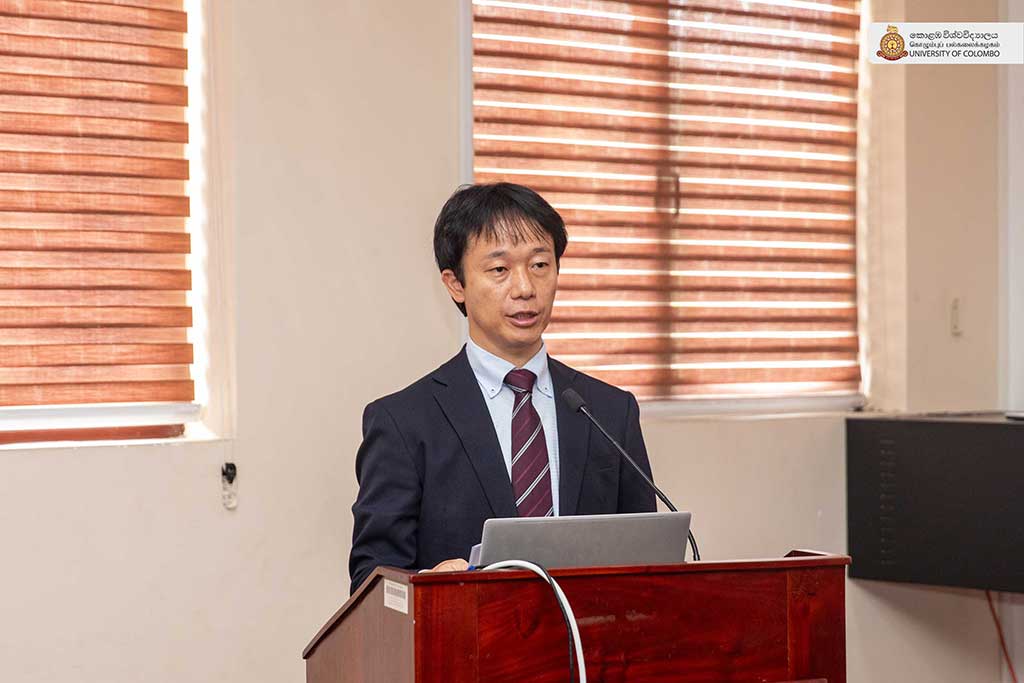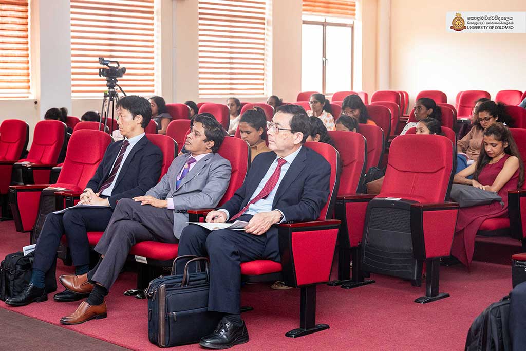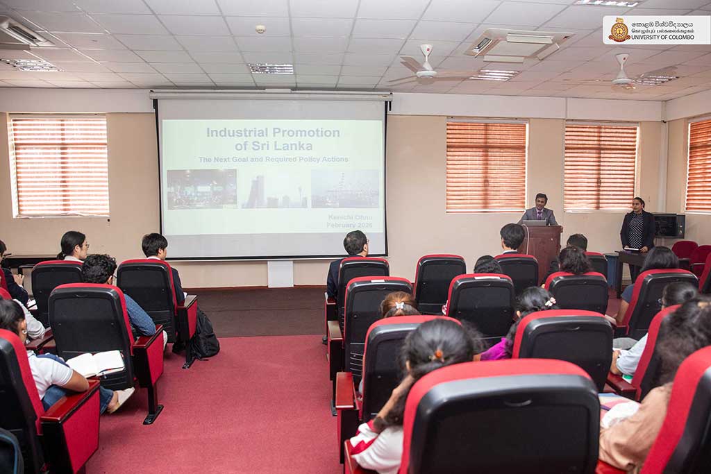 The highlight of the session was the lecture delivered by Emeritus Professor Kenichi Ohno of the National Graduate Institute for Policy Studies, Japan, on the theme “Industrial promotion of Sri Lanka – the next goal and required policy actions.” In his lecture, Professor Ohno offered a comprehensive analysis of Sri Lanka’s industrial development trajectory, identifying key policy challenges and outlining strategic pathways for sustainable economic transformation. Drawing on his extensive international experience in development policy, he emphasised the need for sound policy strategies and strong leadership for achieving national development goals. The session was moderated by Professor Priyanga Dunusinghe of the Department of Economics, Faculty of Arts. Mr Noguchi Takuma, Senior Representative, JICA; Ms Yoneda Hiroka, Representative, JICA; Mr Thiyagarajah Paramendiren, Senior Specialist, JICA and Dr Iroja Caldera, Director of the International Office, also attended the session.