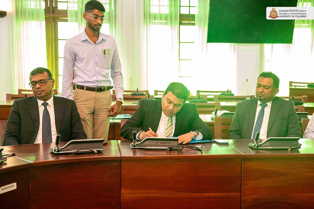 The LOLC Life Assurance Limited and LOLC General Insurance PLC (collectively referred to as LOLC) and the University of Colombo signed a Memorandum of Understanding (MoU) on 27 January 2026, to strengthen collaboration between academia and industry in the financial and insurance sectors. The signing ceremony was attended by Professor Indika Mahesh Karunathilake, Vice Chancellor of the University, Mr Kithsiri Gunawardena, Chairman of LOLC, Mr Chandana L. Aluthgama, Executive Director of LOLC, and Ms K. C. S. Perera, Registrar of the Universtiy.