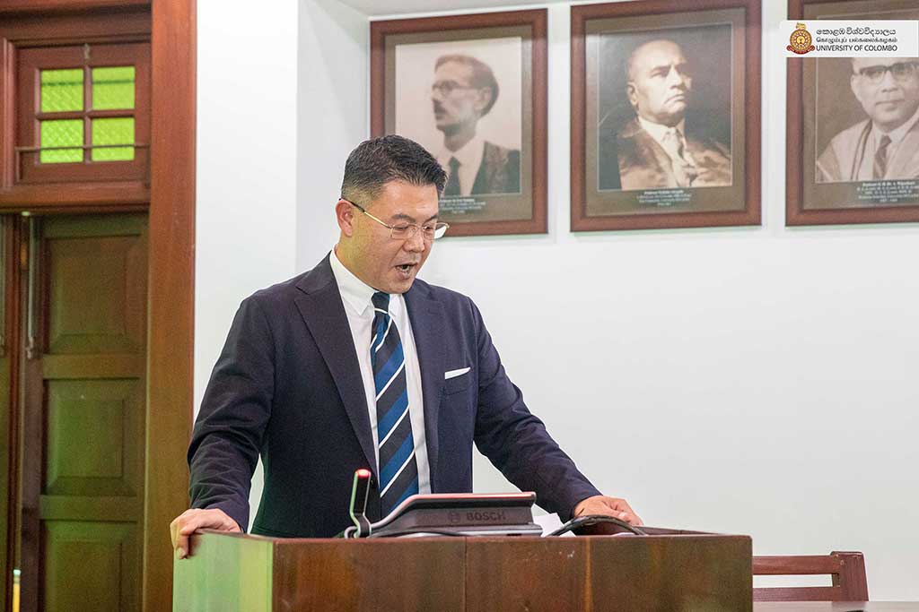 The event was held under the patronage of the Vice-Chancellor, with the participation of the Registrar, Bursar, Dean of the Faculty of Technology, and other senior university officials. Representing MUFG Bank were Mr Michiyasu Saito, Managing Director of MUFG Bank Chennai Branch & Chief Representative Officer of MUFG Colombo Representative Office, and Ms Shalini Jayarathne. The ceremony formally commenced with a warm welcome to all attendees, followed by an introductory video presentation on MUFG Bank, highlighting the institution’s global vision, core values, and commitment to education. Addressing the gathering, the Vice-Chancellor, Professor Indika Mahesh Karunathilake, delivered a congratulatory speech emphasising the importance of international partnerships and the role of scholarships in empowering students to achieve academic and professional excellence.
