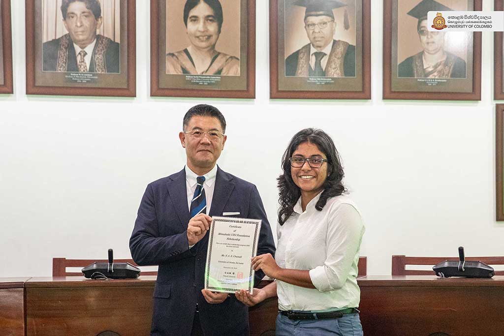 The Awarding Ceremony of the Mitsubishi Foundation (MUFG) Scholarship for 2025 was held on 18 December 2025 at the Senate Hall, College House premises. This marked the ninth consecutive year of the scholarship award, reaffirming the strong relationship between the University of Colombo and MUFG Bank in recognising and supporting academic excellence.