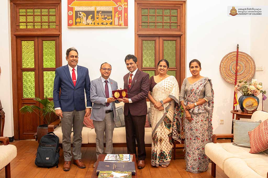 Professor Manoj Humagain, the Dean of the School of Medical Sciences at Kathmandu University, Nepal, paid an official visit to the University of Colombo on 6 March 2026. During the visit, Professor Humagain held discussions with Professor Indika Mahesh Karunathilake, Vice Chancellor of the University of Colombo, Professor Sampath Punchihewa, Dean of the Faculty of Law, Professor Kaumadi Karunagoda, representing the Dean of the Faculty of Indigenous Medicine, and Dr Iroja Caldera, Director of the International Office.